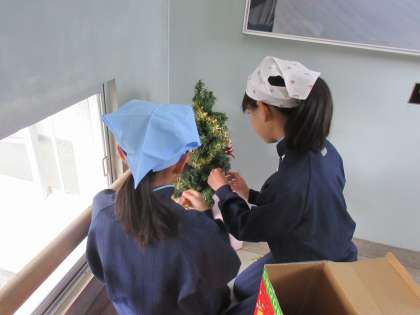 平成29年度の6年生、AさんとKさんは4年生の頃から中央階段踊り場での朝活動を続けていました。雑巾や箒を使った掃除だけではなく、小さいボードにメッセージを書いたり、クリスマスツリーなどの小物を用意したりするなど、季節が感じられる踊り場でした。AさんとKさんは、自分たちで踊り場を作り上げることやりがいを見いだし、毎日の朝活動に楽しんで取り組んでいました。