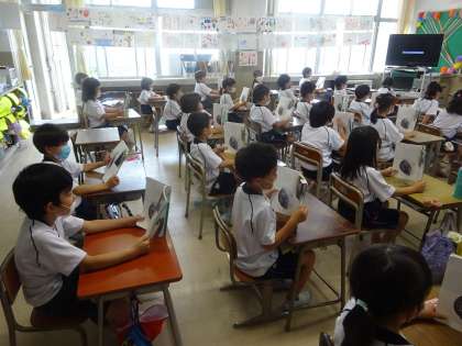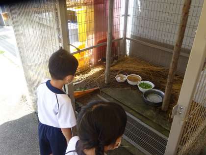 くちばし(1年生) 公開日 2020/06/30 更新日 2020/06/30 1年生 国語で「くちばし」の学習をしています。 堀川小学校にいるガチョウやカモの「くちばし」はどうなっているだろうか、ということで、実際に見に行きました。 教科書に出ている「きつつき」「おうむ」「はちどり」との違いに注目しながら見ていた子どもたちでした。