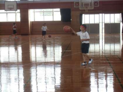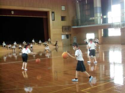 体育の時間、バスケットボールを使ってドリブル練習をしました。子どもたちは久しぶりにボールを使うことから、とても楽しそうに体を動かしていました。