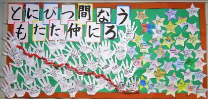 学校再開後、役割分担して制作を続けてきた学級目標がついに完成し、教室の真正面に掲示されました。巻き物(HPには非公開です)と合わせて、これからクラスが進んでいく指針となることでしょう。