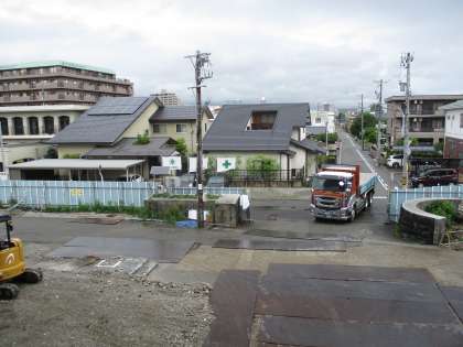 瓦礫の撤去が進んでいます。大きなダンブカーが何度も出入りを繰り返しています。
