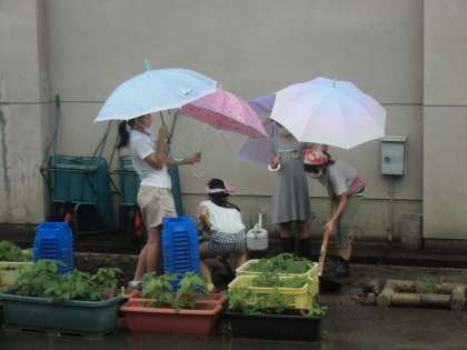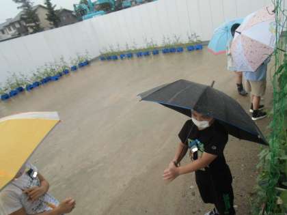 雨にも負けず、自ら身の回りの環境にはたらきかけていく子どもたちです。