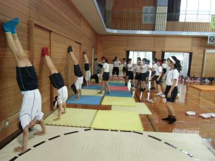 体育の時間に、「投げる」「跳ぶ」「鉄棒運動」「マット運動」の4つの運動を試しながら取り組むサーキットトレーニングを行いました。子どもたちは、チャレンジ技セブンの金・銀・銅の技を意識しながら、それぞれの運動に意欲的に取り組んでいました。