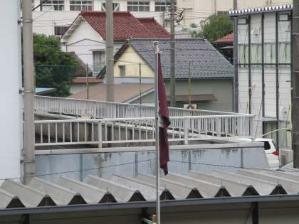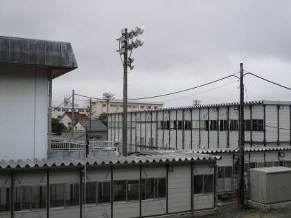 校舎取り壊し前まで、校旗は校長室上の掲揚ポールに掲げていましたが、4月以降はポールが撤去され、掲揚できなくなっていました。昨日、取り壊し業者さんのご協力で仮設の掲揚ポールを設置しました。