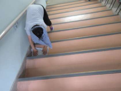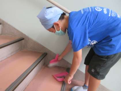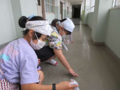 朝活動で3年生のまちを整えました。廊下を隙間なく拭こうとしたり、黒板や棚の下のほこりを見付けて集めたりする姿が見られました。