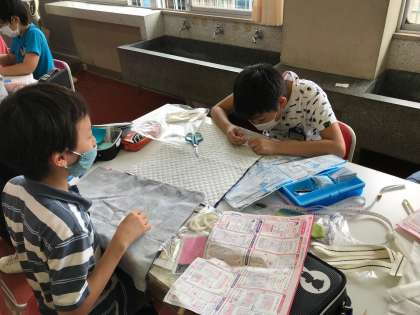 今、家庭科の時間にはトートバッグやナップザック作りを行っています。