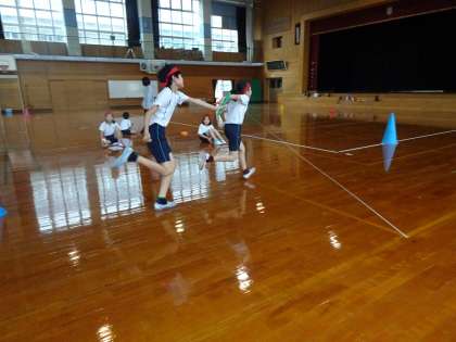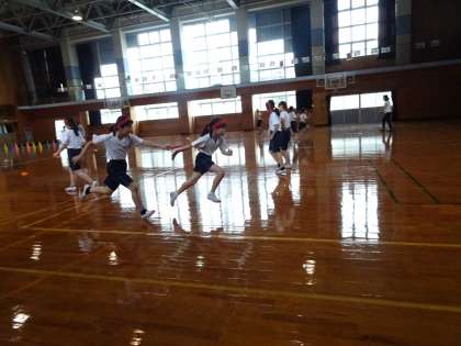 今月末の学年リレー大会に向けて、早速チームのバトンパスの練習が始まりました。