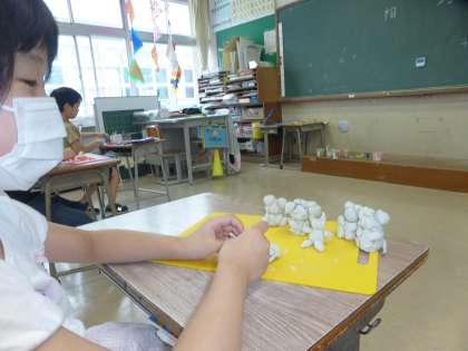 「図画工作科」の粘土遊びで、かわいネズミを細かく丁寧につくった3年生がいました。粘土板の上に大事そうに飾られたそのネズミに、この1か月間で、1匹ずつ家族を増えていきました。