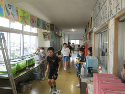 短縄跳びに熱中する子ども、メダカの世話など理科の学習に取り組む子ども、体育館でリレー大会に向けた練習をする子どもなど、それぞれが、それぞれの目当てに向かって一生懸命に取り組んでいます。様々な活動が制限されている中ですが、子どもがいきいきとする尊い時間です。