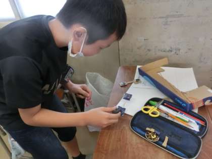 「つくって あそぼう−じしゃくのおもちゃ−」の学習で磁石を使ったおもちゃを作って遊んでいます。子どもたちは、自分なりのおもちゃを作り、とても楽しそうに遊んでいました。