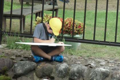 いたち川で写生会をしました。天気は曇りで、涼しかったです。