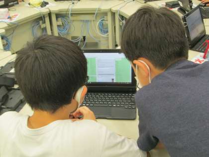 情報教育室(3年生) 公開日 2020/07/21 更新日 2020/07/21 3年生 今日、情報教育室で5年生にパソコンの使い方を教えてもらいました。まだローマ字を学習していない子供たちでしたが、国語の教科書を見ながら取り組んでいました。 これから総合の学習などで活用して、使い慣れていきます。