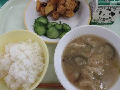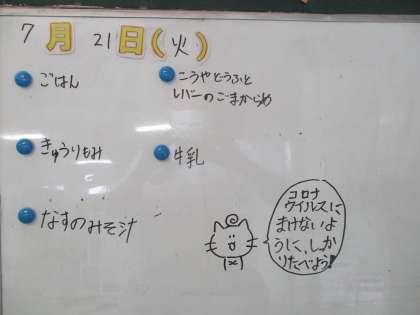 今日の給食 7/21(火) 公開日 2020/07/21 更新日 2020/07/21 給食室 今日は、高野豆腐が食材に使われていました。普段は煮物ですが、今日は、レバーやジャガイモと一緒に、素揚げにされていました。ちょっと変わった食感でした。 4年2組では、静かに給食準備に取り組んでいました。