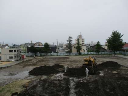 校舎西側(旧西棟跡)の杭抜き作業が始まりました。