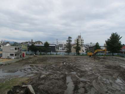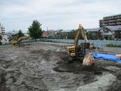 校舎西側の様子です。杭抜き作業に向けた準備が始まりました。