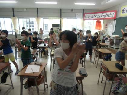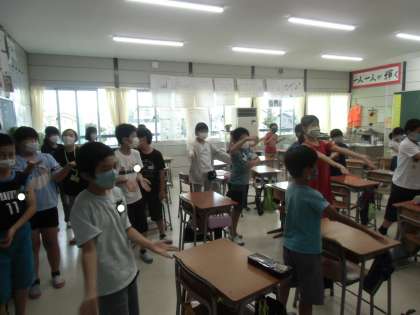 全校リズムタイム(4年生) 公開日 2020/07/29 更新日 2020/07/29 4年生 今日で3回目のリズムタイムです。体育館や各教室と活動場所はそれぞれ違いますが、全校みんなで心をつなげて踊りました。