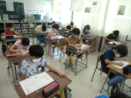 今日は、算数のたしかめテストをしました。最後まで粘り強く取り組んでいます。