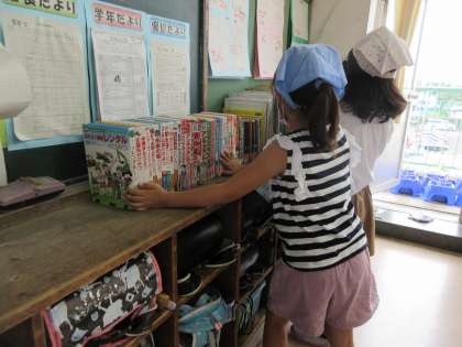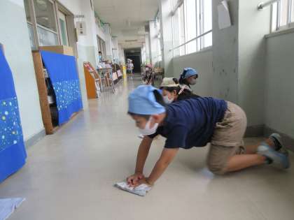 朝から暑い日となりましたが、子どもたちは密にならないように気を付けて朝活動に取り組んでいます。教室や学年のまちを見て、自分で見つけ働きかけられる子どもたちです。