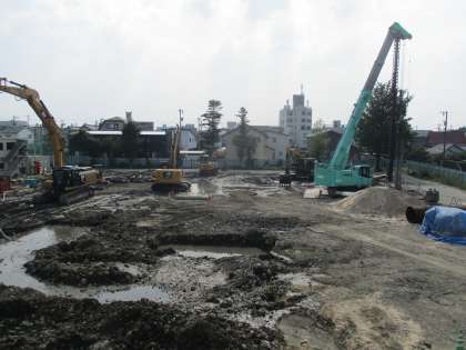 暑い日差しの中、工事は行われています。