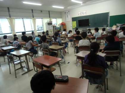校長先生からのお話を聞きました。終業式のあと、子どもたちからは「思いやりをもって過ごしたい」「コロナにかからないように気を付けたい」などという言葉が聞かれました。