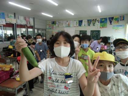 今朝、自分で収穫したヘチマを見せてくれました。終業式にぴったり、子どもたちと同じように、成長したヘチマです。