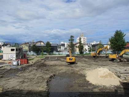 猛暑の中、工事は進んでいます。たくさんの杭が抜かれてます。