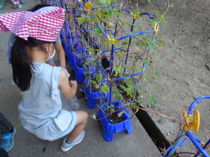 たねができたよ(1年生) 公開日 2020/08/19 更新日 2020/08/19 1年生 夏休み前に家に持ち帰ったアサガオが、2学期になり続々と学校へ戻ってきました。保護者の皆様、学校まで運んでくださりありがとうございました。 子どもたちのアサガオですが、続々と、種ができています。 実った種をそっと集めて、「〇個できたよ」と教えてくれました。