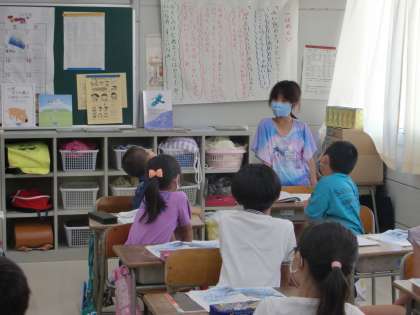 「レオ・レオニー」作 「スイミー」の学習に取り組んでいます。兄弟たちがみんな飲み込まれ、ひとりぼっちとなったスイミーの気持ちを考え、話し合いしました。自分の生活経験からスイミーの淋しさや悲しさを想像しながら、感じたことや思ったことを聞き合い、伝え合いをしました。