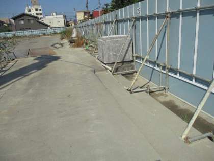 3枚目は、仮設フェンスの内側、旧4年生玄関付近です。何人もの人が登って遊んでいた門柱はまだ残っています。