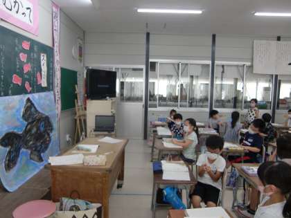 国語の学習(2年生)パート2 公開日 2020/08/28 更新日 2020/08/28 2年生 「そっくりの兄弟たちと出会って、びっくりしたと思う」「そっくりの兄弟たちと出会えたけれど、やっぱり本当の兄弟たちではないから、淋しい気持ちが残っていると思う」など、登場人物の立場に立って、それぞれの気持ちを考えました。 子供たちは、聞き合いを通して、いろいろな思いや考えに出会うことを楽しんでいます。