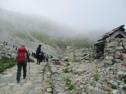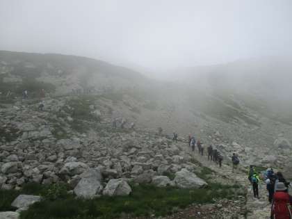 プレイバック立山登山2020 もうすぐ一ノ越 公開日 2020/08/30 更新日 2020/08/30 堀川小学校 いま・むかし 懺悔坂を進むと祓堂が見えてきました。最後の急坂の登ると一ノ越です。出発当初は青空でしたが、突然、ガスがかかってきました。一ノ越が見えたり、隠れたりしていました。