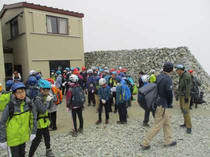 今から登る岩山を前に、「さあ、頑張るぞ!」と自分の気持ちを確かにする子どもたちでした。