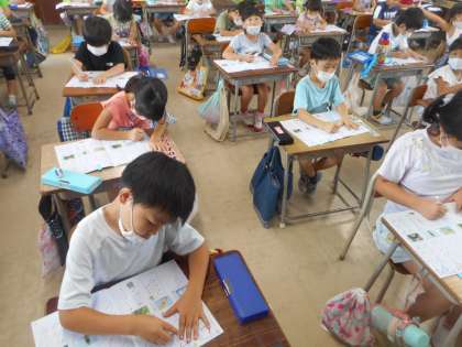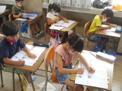 カタカナの学習を始めると聞いた子どもたちは大喜びでした。 書き順や字形に気を付けて、丁寧に進めてました。