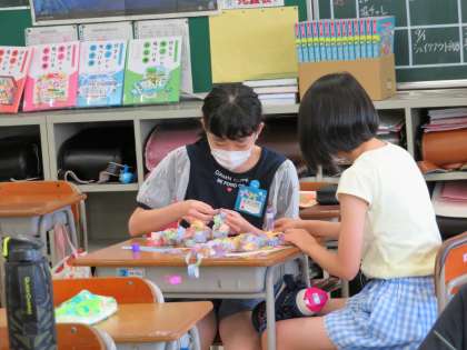 休み時間の子どもたちの様子を見てみると、教育実習の先生方を迎える準備をしている子ども、遊びに来た1年生と「あっち向いてホイ」をして遊んでいる子ども、などなど思い思いの過ごし方をしています。