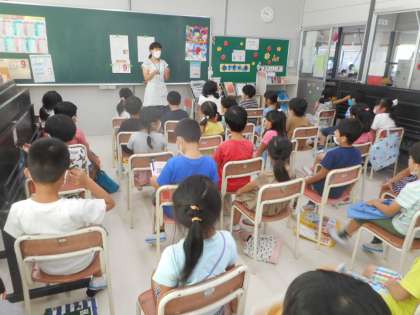 図書室オリエンテーション(1年生) 公開日 2020/09/02 更新日 2020/09/02 1年生 1年生の子どもたちは、図書室へ行くのを楽しみしています。 今日は、図書館司書の先生に本の返却についてのオリエンテーションを開いてもらい、本の返却方法について確認しました。 これからも読書に親しんでもらいたいです。
