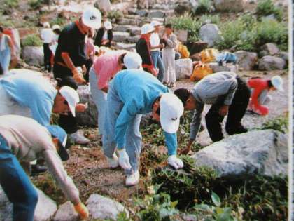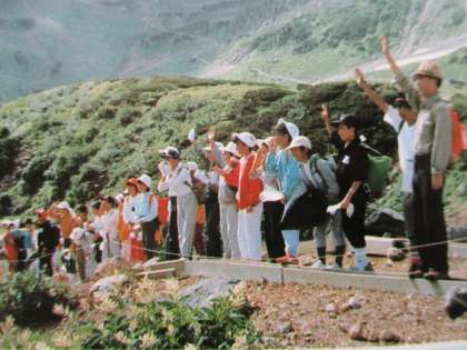 3枚目の写真は、室堂のようです。全員でゴミ拾いをしている様子でしょうか。ただ登山をするだけではなく、奉仕活動もしていたんですね。