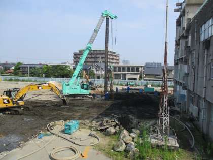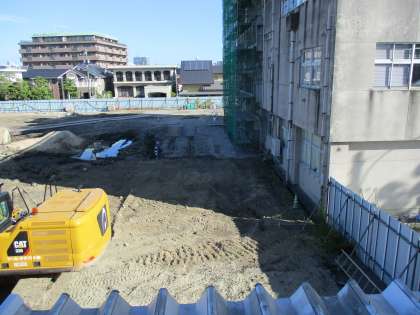 上の写真は、今の既存校舎西側の様子です。整地が進んでいることが分かります。