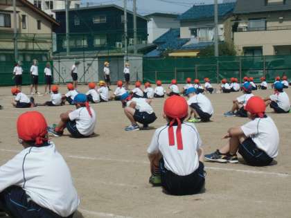 ソーシャルディスタンスと熱中症対策に配慮して、結団式を行いました。心を一つに頑張ろう!