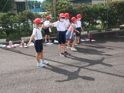 かげつなぎをしたよ(3年生) 公開日 2020/09/16 更新日 2020/09/16 3年生 理科では、「太陽とかげの動きを調べよう」の学習を行っています。手を使わずに影をつなげる方法を考えたり、影踏みを行ったりしました。活動を通して、影のきまりを見つけている子どもたちがたくさんいました。