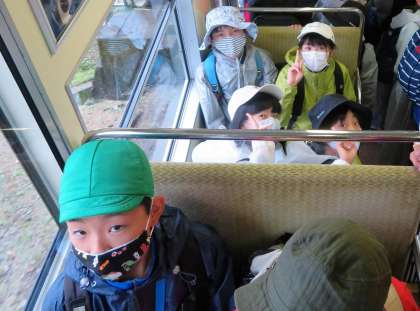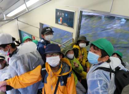 校外学習その1(6年生) 公開日 2020/09/18 更新日 2020/09/18 6年生 今回の校外学習では、8月に行った立山登山で見た立山とは違った景色を見ようと、美女平、称名滝に行きました。 まずは、立山駅から立山ケーブルカーに乗り、美女平駅へ向かいます。120人乗りのケーブルカーを貸し切って、7分程で美女平駅に到着しました。
