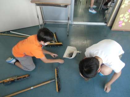 また、朝活動で行っているトイレ掃除を見直し、手洗い場の汚れなど、普段掃除できなかったところを徹底的にきれいにするBくんの姿もありました。「身の回り」というキーワードをもとに、自分のくらしのある場所を見直す5年生です。