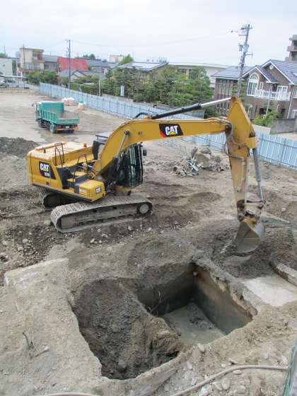 地面のアスファルトを剥がす作業をしている時に、4カ所の空洞が見つかりました。建物の基礎のようです。さあ、ここはどこを掘っているのか分かりますか?