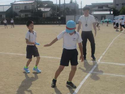 スポーツウィークに向けて(なかよし級) 公開日 2020/09/29 更新日 2020/09/29 特別支援 スポーツウィークに向けて、毎日練習に取り組んでいます。 チームで、大縄跳びやリレーのバトンパスを、何回も練習しています。