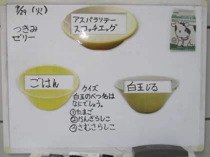 今日は、お月見献立です。お月見行事は、実りの秋をむかえ、作物が無事に収穫されたことを感謝するものです。おだんご、おもち、秋にとれた作物をお供えし、月を見る行事です。今年の十五夜は、10月1日です。
