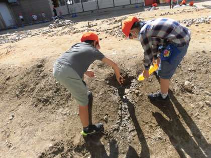 1年3組では、生活科の時間に「みずやつちとあそぼう」の学習を行いました。子どもたちは、事前にどのような遊びをするか計画を立て、必要なものを準備し、今日を迎えました。