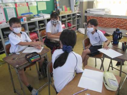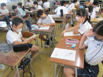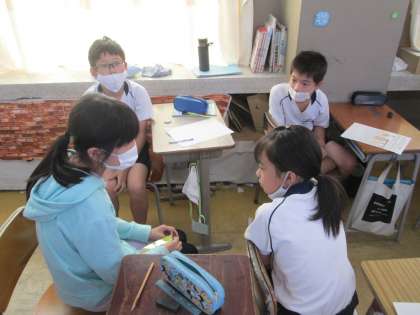 ファミリーごとに、今日までの朝活動の振り返りをしました。それぞれの朝活動を振り返ることで、これからの新たな目当てが立ったようです。高学年として、下学年の見本となれるよう、目当てをもった取組を継続してほしいと思います。