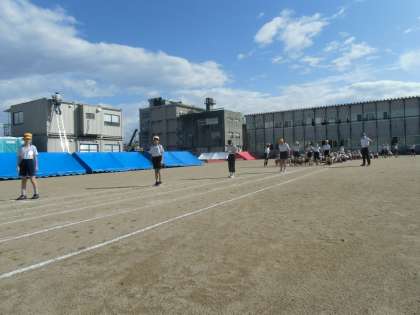 スポーツウィークに向けて(4年生) 公開日 2020/10/01 更新日 2020/10/01 4年生 100m走の練習をしました。 今年は、改築のためグラウンドが狭く、直線コースで走ることができません。走るコースはくじ引きで決定しました。走路に慣れようと何度も走る練習をする子どもたちでした。