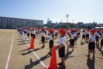 秋晴れとなった今日は、低学年で徒競走の並び方やラジオ体操の練習をしました。大きく手を広げながら体操に励む子どもたちの様子が見られました。