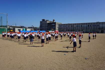 青空の下 スポーツウィークに向けての練習(1年生)