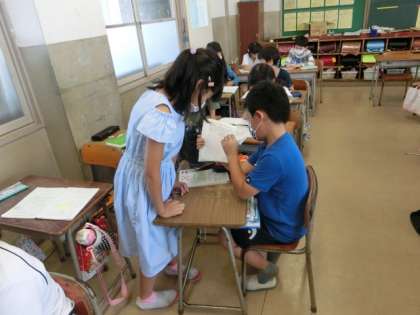 算数の時間に「2けたの整数×1けたの整数の計算の仕方」について考えました。どのように答えを求めるか、自分なりの考えについて仲間と聞き合いました。